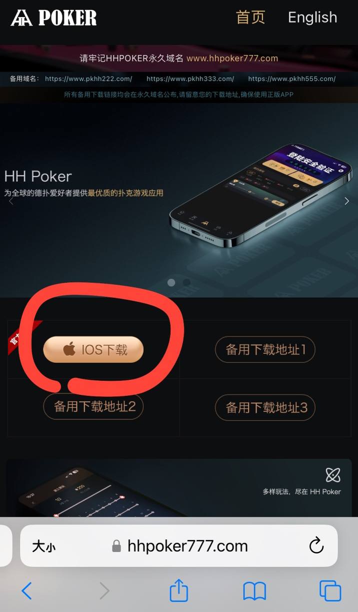 1,在浏览器输入网址: hhpoker.com